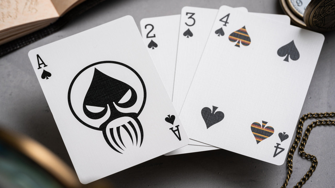 Featuring completely customized artwork, all of the spot cards have accent pips with different patterns and the courts are a light-hearted twist on classic designs. Two custom Jokers are included.
