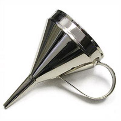 A liquid is given to someone to drink, and then the funnel is placed at the elbow of his bent arm. The other arm is held stiff and moved up and down like a pump handle. The liquid pours out of the funnel in a steady stream.