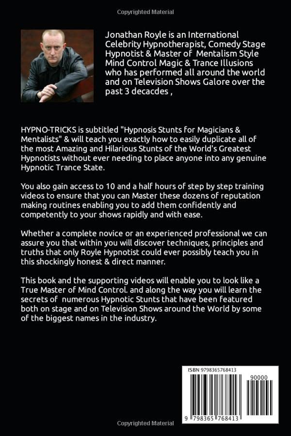 This is the real deal, the true insider Secrets of Pseudo Hypnosis & Hypno-Tricks taught to you by “The British Bad Boy of Hypnosis” Jonathan Royle who at time of this books release in Paperback (Nov 2022) has been a Professional Comedy Stage Hypnotist, Mind Magician and Mentalist performing around the world and on Television Shows Galore for over three decades.