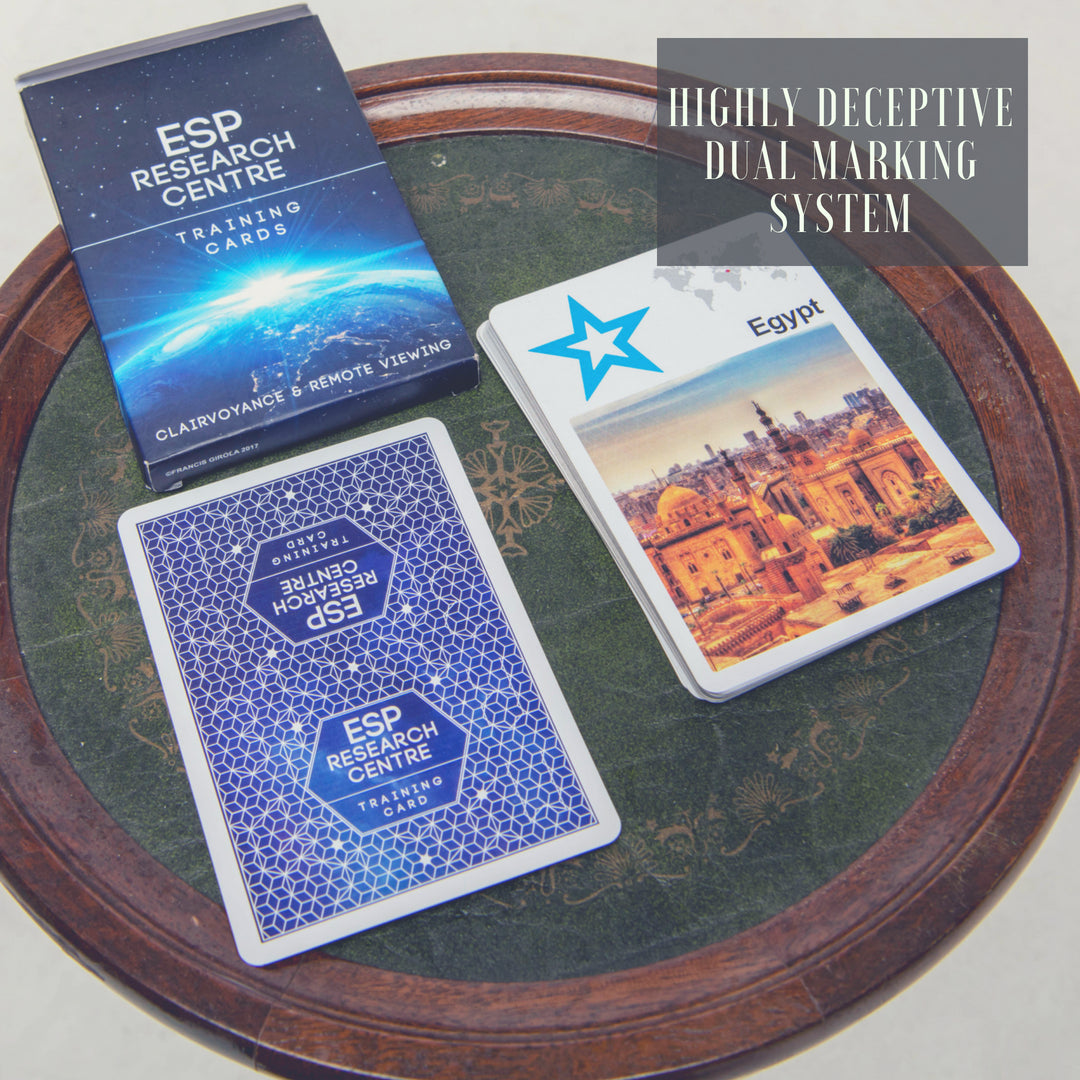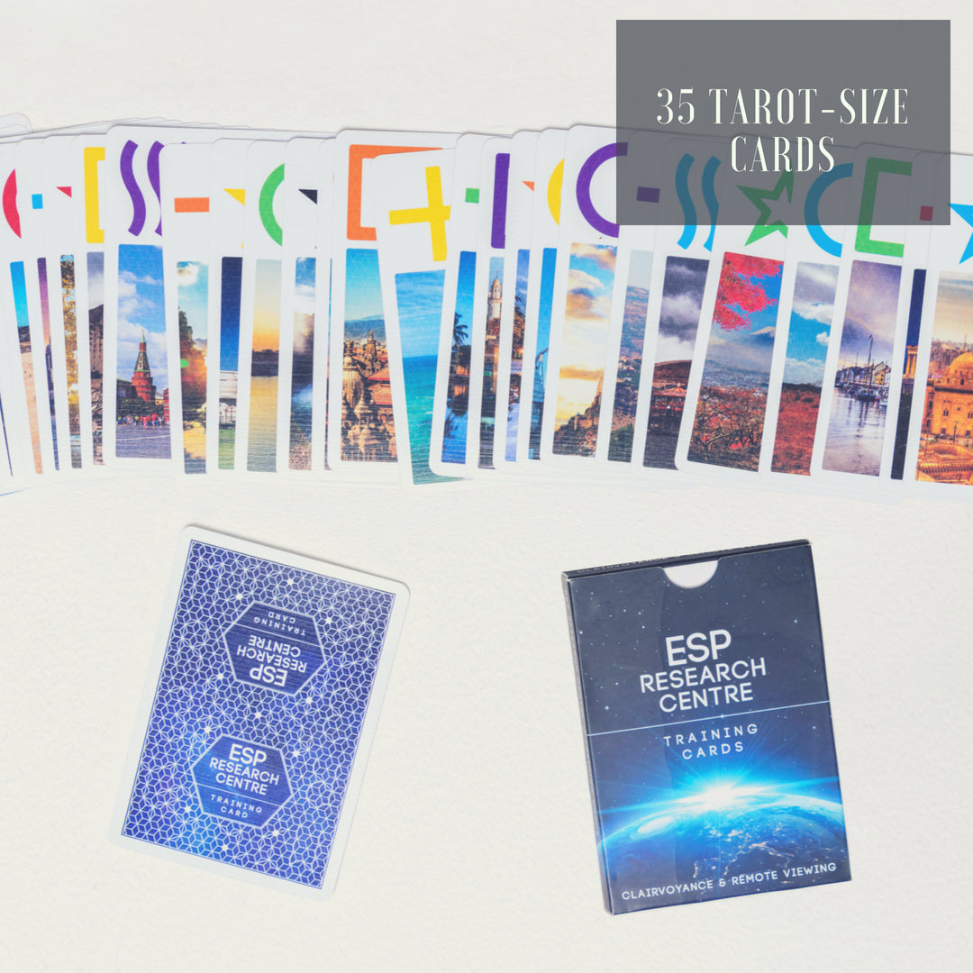 35 tarot-size cards on high quality card stock with a textured air finish conceived with the professional mentalist in mind.